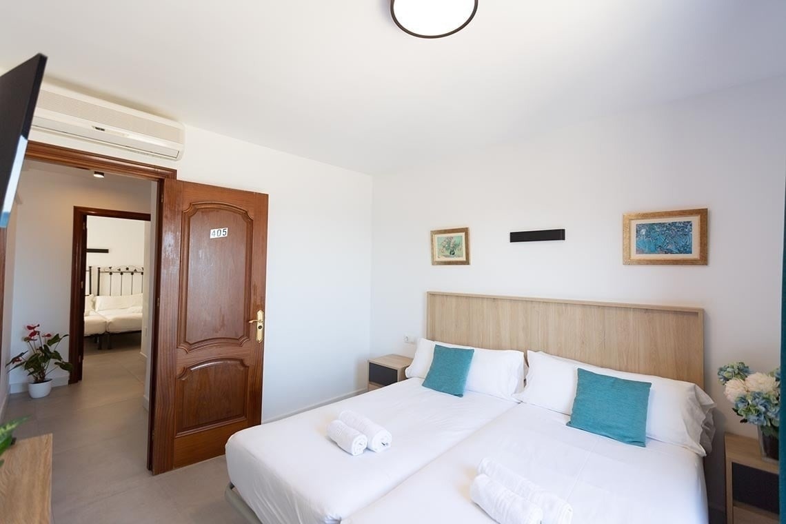 Perfecta para una familia, ya que cuenta con dos habitaciones de 2 camas de 90 cm cada una, un baño y una de las habitaciones con vistas al mar, 25 m², cuentan Tetera/set de té, TV LCD, aire acondicionado y calefacción, wifi gratuito y secador de pelo.